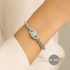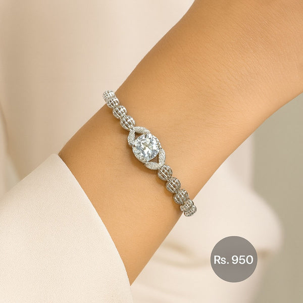 Elegant silver-tone bracelet with textured beads and a sparkling solitaire-style CZ centerpiece. Affordable chic under Rs. 1000.