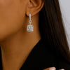 Elegant square-cut drop earrings surrounded by a halo of sparkling CZ stones. An eye-catching blend of grace and luxury, ideal for formal events or special evenings.