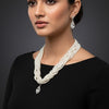 A graceful multi-layer pearl necklace with a sparkling diamond-style drop pendant, paired with matching earrings—perfect for elegant everyday and festive looks.