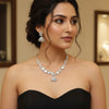 A refined American diamond necklace set featuring a bold geometric pendant with matching earrings. Designed for women who love modern elegance with a touch of glamour.