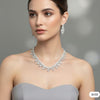 Type: Jewellery Set (Choker & Dangle Earrings) Material: Alloy (Rhodium/Silver Tone Plated), Cubic Zirconia (CZ) Style: Bridal / Garland / Floral / Choker / Festive Gender: Women Occasion: Wedding, Ceremony, Reception, Formal Event