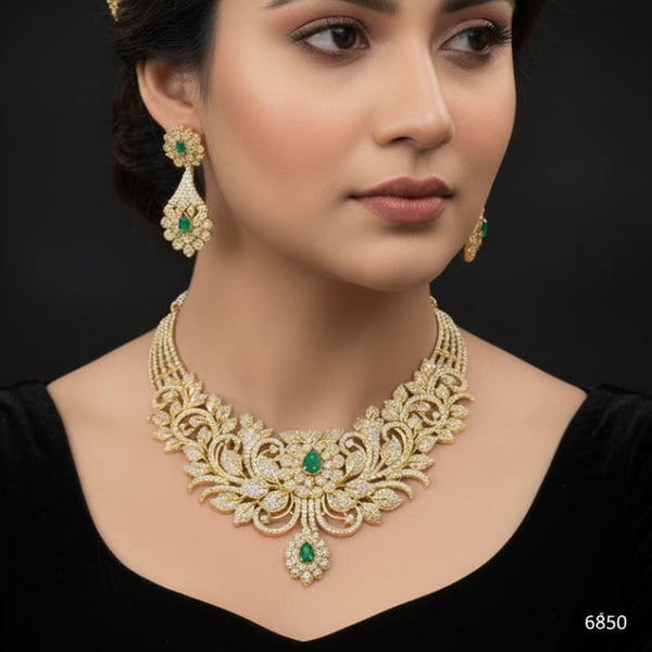 Type: Jewellery Set (Necklace & Earrings) Material: Alloy (Gold Tone Finish) Style: Traditional / Ornate / Statement / Festive / Nature-Inspired Gender: Women Occasion: Wedding, Reception, Festive Celebration, Traditional Party