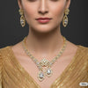 Type: Jewellery Set (Statement Necklace & Earrings) Material: Alloy (Gold Tone Finish), Cubic Zirconia (CZ) Style: Grand / Statement / Floral / Pavé / Drop / Opulent Gender: Women Occasion: Gala, Wedding Reception, Formal Dinner, High-End Festive