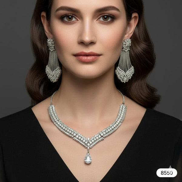 Type: Jewellery Set (Statement Necklace & Tassel Earrings) Material: Alloy (Rhodium Plated), Cubic Zirconia (CZ) Style: Statement / Gala / Tassel / Pavé / V-Neckline / Luxury Gender: Women Occasion: Wedding Gala, Formal Reception, Red Carpet, Anniversary