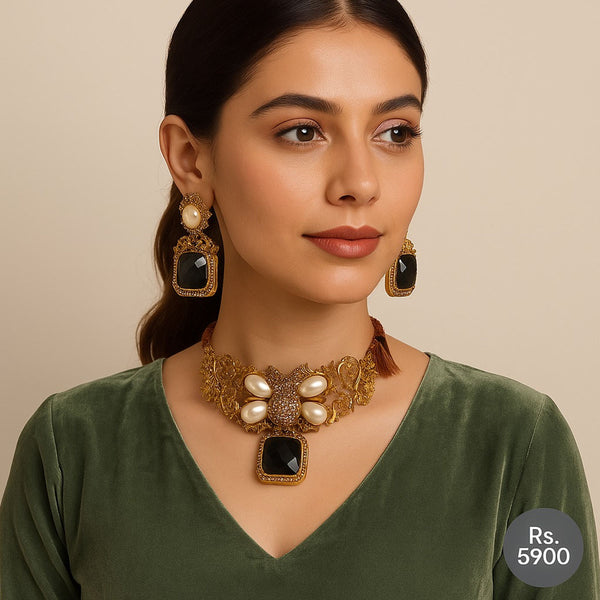 Royal Stone & Pearl Choker Necklace Set Royal Stone & Pearl Choker Necklace Set
