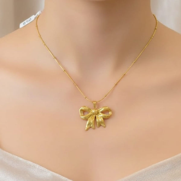 Bold. Sculptural. Playful Elegance.π Make a high-fashion statement with our Chunky Textured Ribbon Charm Necklace. This distinctive piece features a voluminous, textured charm shaped like a loosely tied ribbon or bow. Its sculptural quality and polished finish deliver a modern, chic, and playful aesthetic, perfect for elevating casual wear or adding edge to formal looks.