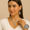 Elegant diamond tassel design with necklace, matching earrings & maang tikka. Perfect for bridal & festive wear.