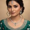 Elegant Emerald & Zircon Bridal Jewelry Set Necklace, Earrings & Maang Tikka