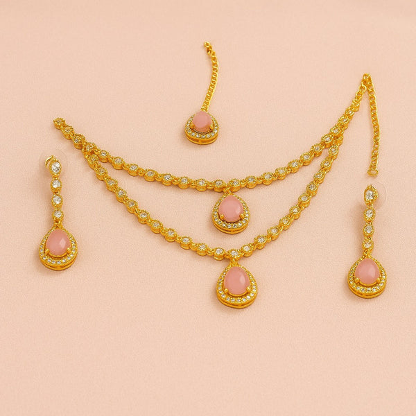 Gold Plated Necklace Set with Pink Stones β Elegant Bridal & Party Wear Gold Plated Necklace Set with Pink Stones β Elegant Bridal & Party Wear