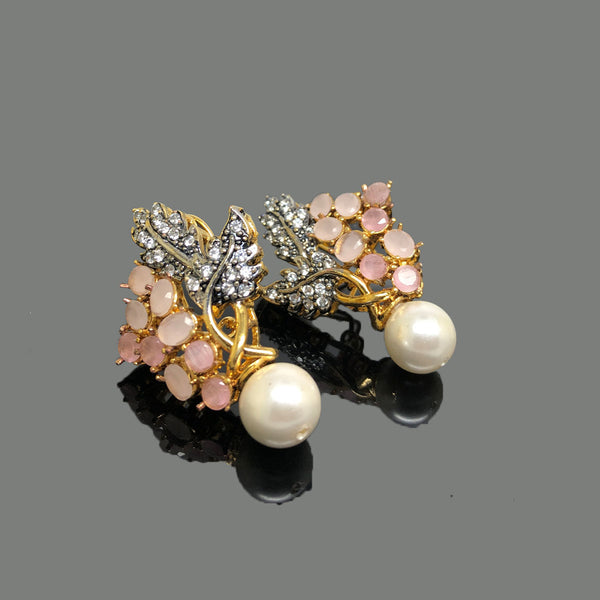 Add timeless charm to your outfit with these gold-tone earrings featuring delicate floral detailing, sparkling champagne stones, and classic pearl drops. Ideal for weddings or festive occasions. Pr...
