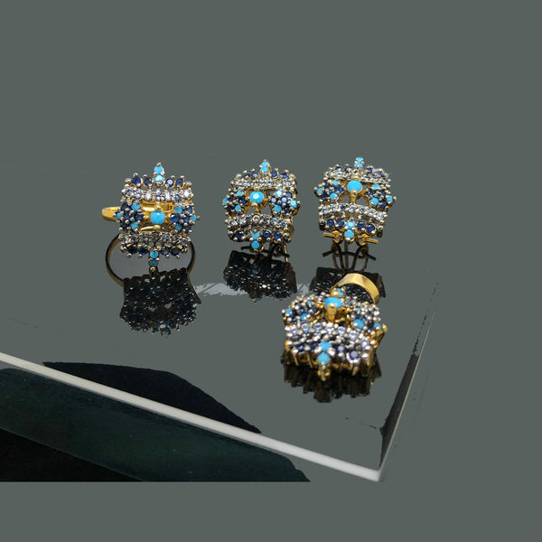 Gold-Tone Turquoise Gemstone Locket Set Gold-Tone Turquoise Gemstone Locket Set