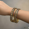 Our Intricate Openwork Link Design Blue Stone Kadas offer high elegance and detailed craftsmanship. Featuring delicate openwork metal links and rich, deep blue gemstone simulants, this stunning pair of kadas provides a sophisticated, colorful statement for festive and formal occasions.