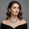 Radiate sophistication with this *Luxury Emerald & Diamond Necklace & Earring Set*, crafted to perfection for brides and elegant soirées. Each deep emerald-green stone is framed with shimmering diamond-cut zircon crystals, creating a breathtaking contrast that captures light beautifully.