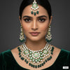Embrace timeless bridal grandeur with our Luxury Kundan Look Pearl Bridal Necklace Set. This opulent ensemble features intricate Kundan-style setting imitation stones, meticulously layered with lustrous faux pearls in a traditional design. The set includes a magnificent tiered necklace, statement earrings, and a matching tikka, ensuring a complete, unforgettable look for your wedding day.
