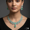 Type: Jewellery Set (Necklace & Earrings) Material: Alloy (Rhodium Plated), Cubic Zirconia (CZ) Style: Formal / Geometric / Art Deco / Modern Bridal / Statement Gender: Women Occasion: Wedding, Reception, Gala, Formal Dinner, Anniversary